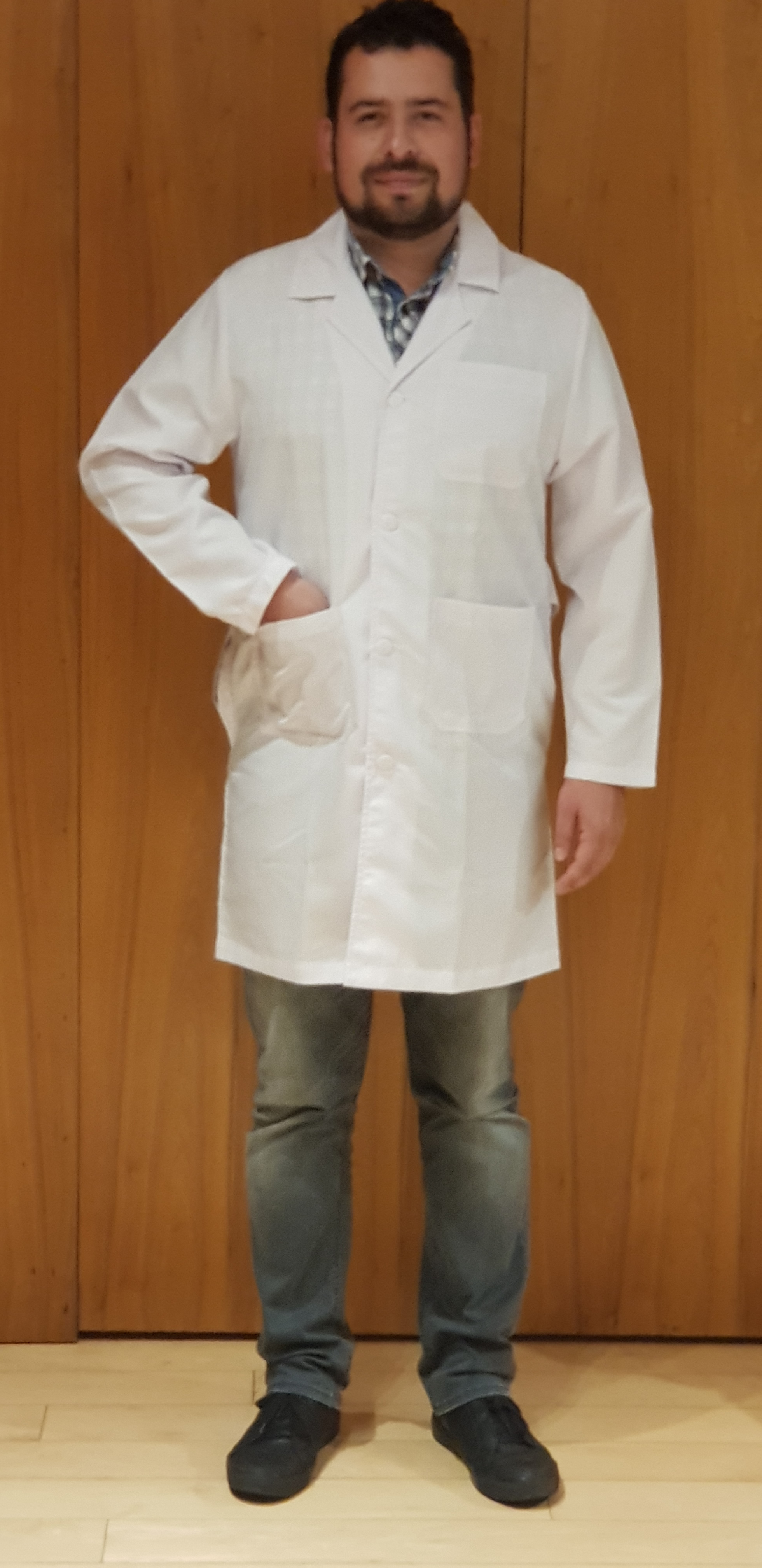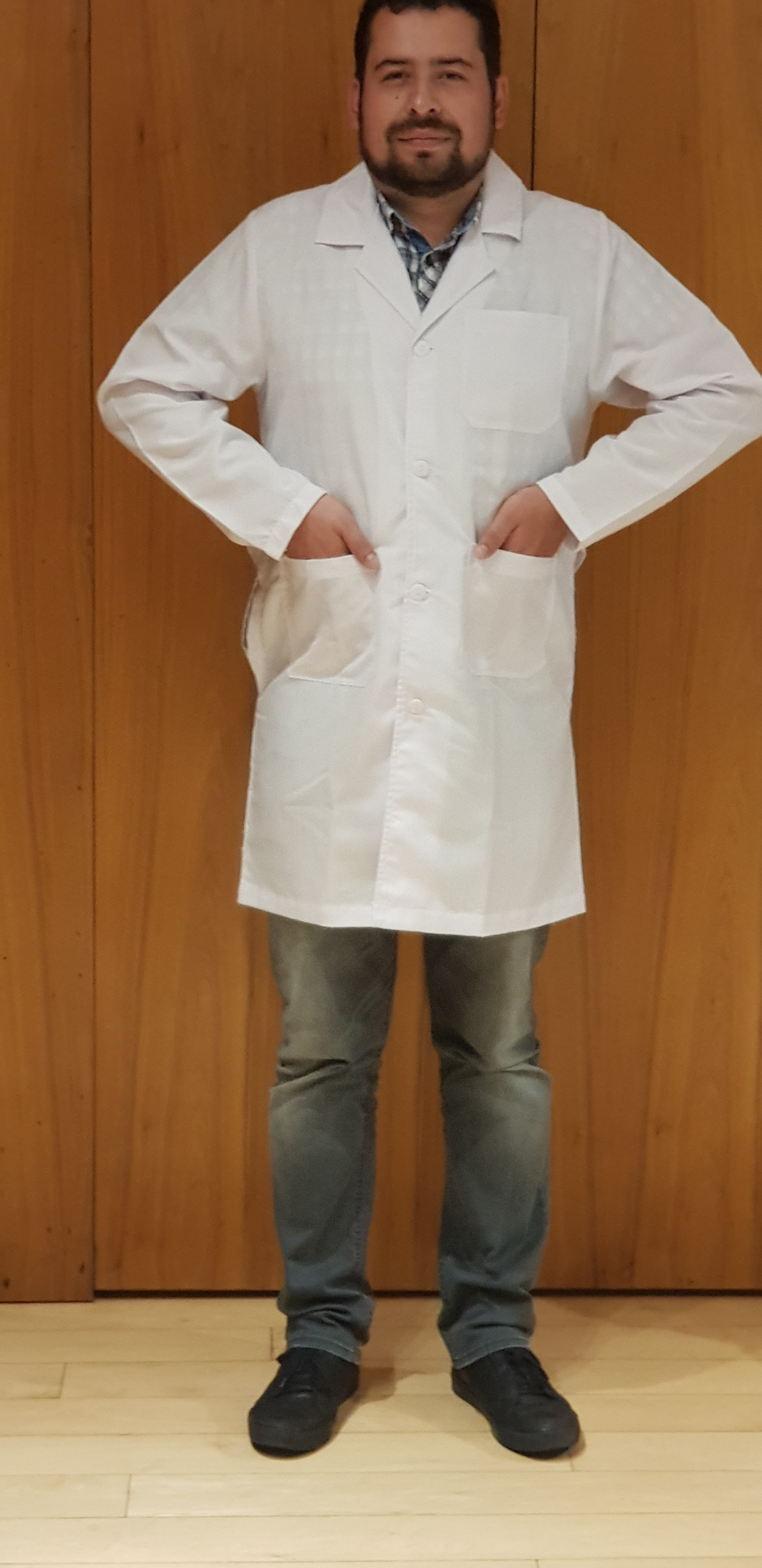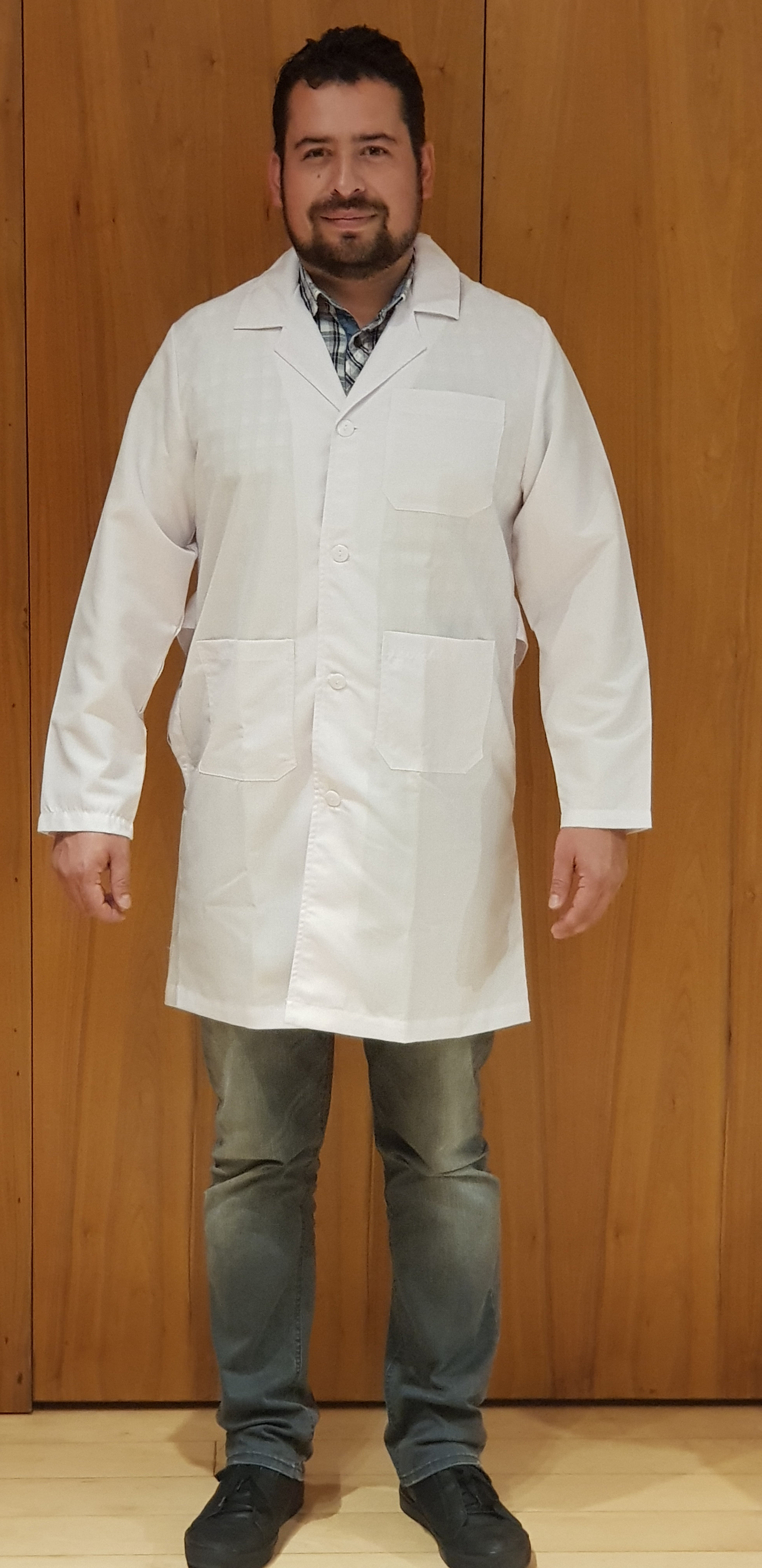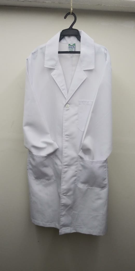Descripcion: Bata de medico e industrial corte largo (abajo de la rodilla), manga larga
