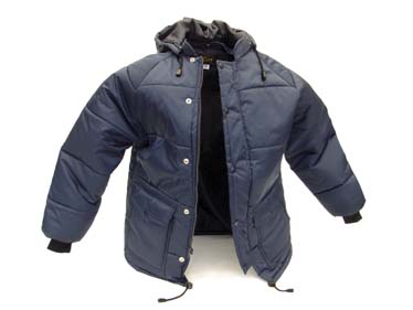 | CHMT 1802 | Chamarra est. 83, confeccionada en nylon pvc, forro capitonado, pretina, puños pretina de poliester corta. Color: Negro y azul marino |